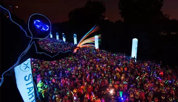 浪漫到不行的夜晚荧光跑,荧光棒、牛角灯你招架得住吗?在黑暗中,追逐着梦想的光芒到达终点!跟大家跑在一起将点点荧光汇聚,让身边近在咫尺的朋友感受到我们浓浓的爱!敢不敢来,看你的!