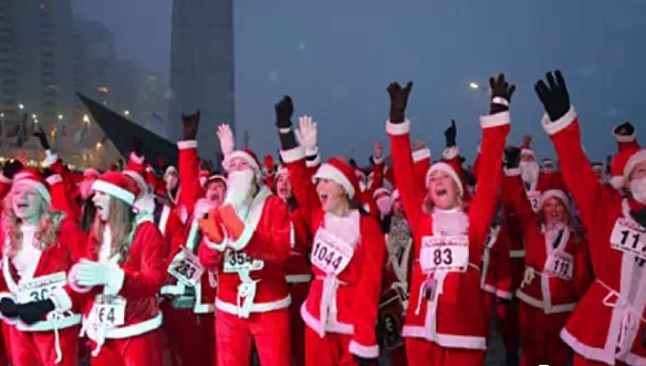圣诞跑源于欧美国家,是每逢圣诞节都会举行的一种特色跑步活动,参与者装扮成圣诞老人的形象。他们不为名次、不为奖牌,只为快乐而来。这种新奇的跑步形式为西方传统节日增添了新的内涵和色彩,吸引了无数运动爱好者踊跃参与。